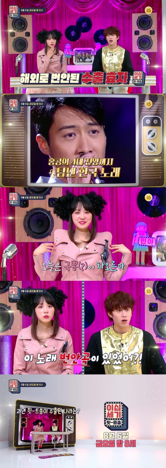 '힛트쏭' MC 김희철과 김민아는 '해외에서 번안한 우리가요 힛트쏭'이 공개될수록 한국에 대한 자부심이 급상승한다. 이와 함께 표절 논란까지 받았던 곡이 나오자 "예상을 깨는 노래가 너무 많다"라며 연신 놀라움을 내비친다.