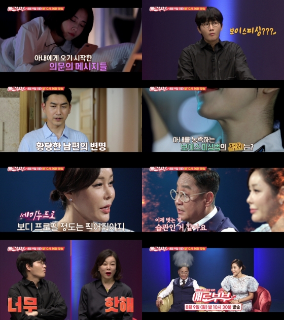 6일 SKY채널, 채널A 예능프로그램 '애로부부' 측에 따르면 오는 9일 방송에선 어느 날, 의문의 메시지를 받기 시작한 아내와 "사실 내가 보이스피싱을 당했다"고 고백하는 남편의 모습으로 시작된다. 이어지던 문제의 메시지는 상상할 수 없는 사건으로 이어지고, "혹시...나 찾고 있나?"라는 여자의 목소리가 깔리자 MC들은 "맙소사"라며 경악했다. '보이스피싱'이 불러온 예측불허 사연은 본 방송에서 공개된다.