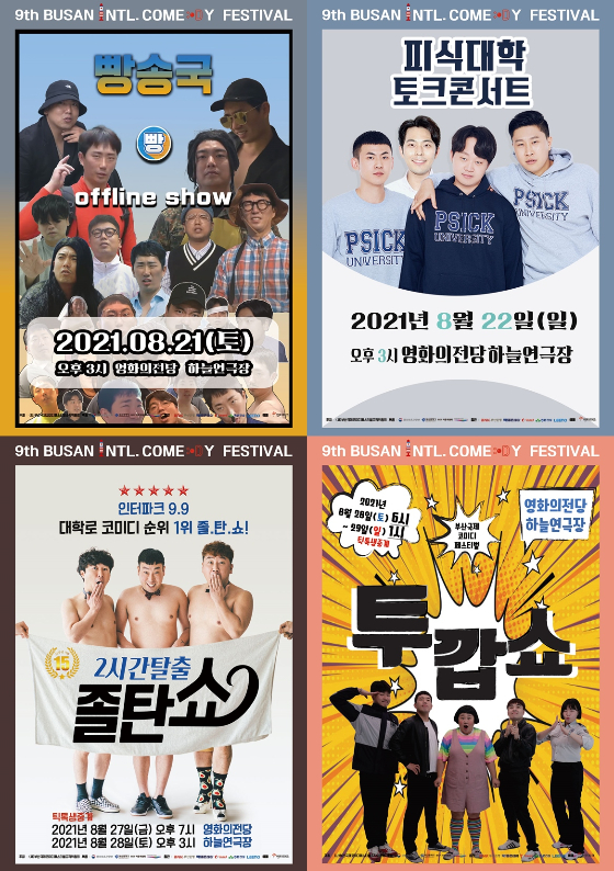 제9회 '부산국제코미디페스티벌'의 '빵송국', '피식대학', '졸탄쇼', '투깝쇼'가 관객들의 웃음 사냥에 나선다.
