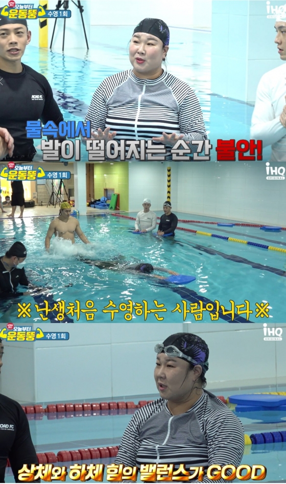 11일 공개되는 IHQ '오늘부터 운동뚱'(이하 '운동뚱')에서는 수영에 첫 도전하는 김민경의 모습이 그려진다.