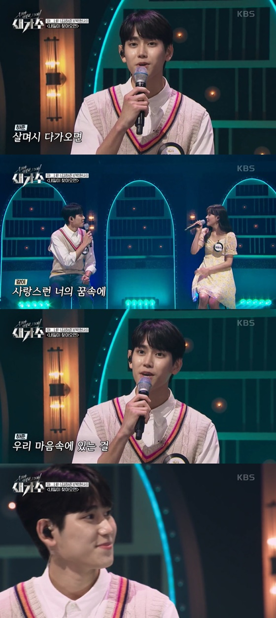 김하준은 지난 14일 오후 방송된 KBS 2TV 오디션 프로그램 '우리가 사랑한 그 노래, 새가수'(이하 '새가수')에 화이트 셔츠에 베스트를 입고 등장했다. 이날도 그는 훤칠한 키와 훈훈한 비주얼로 시선을 모았다.