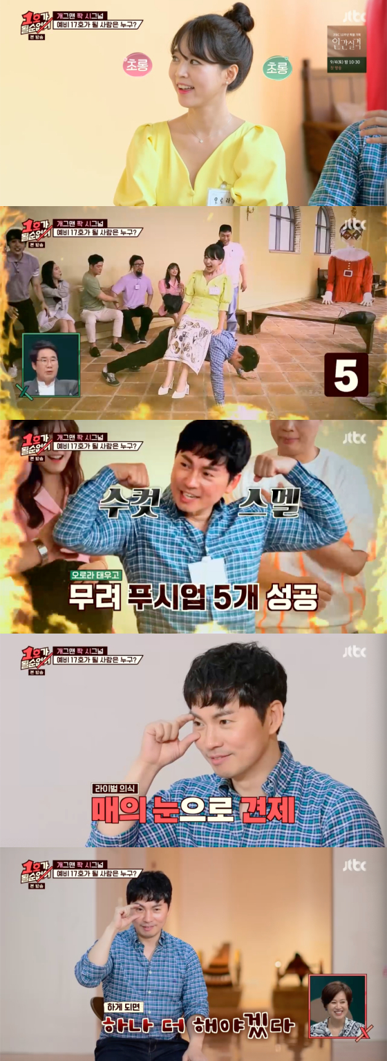 '1호가' 개그맨 이문재가 김마주를 업고 푸시업을 했다.