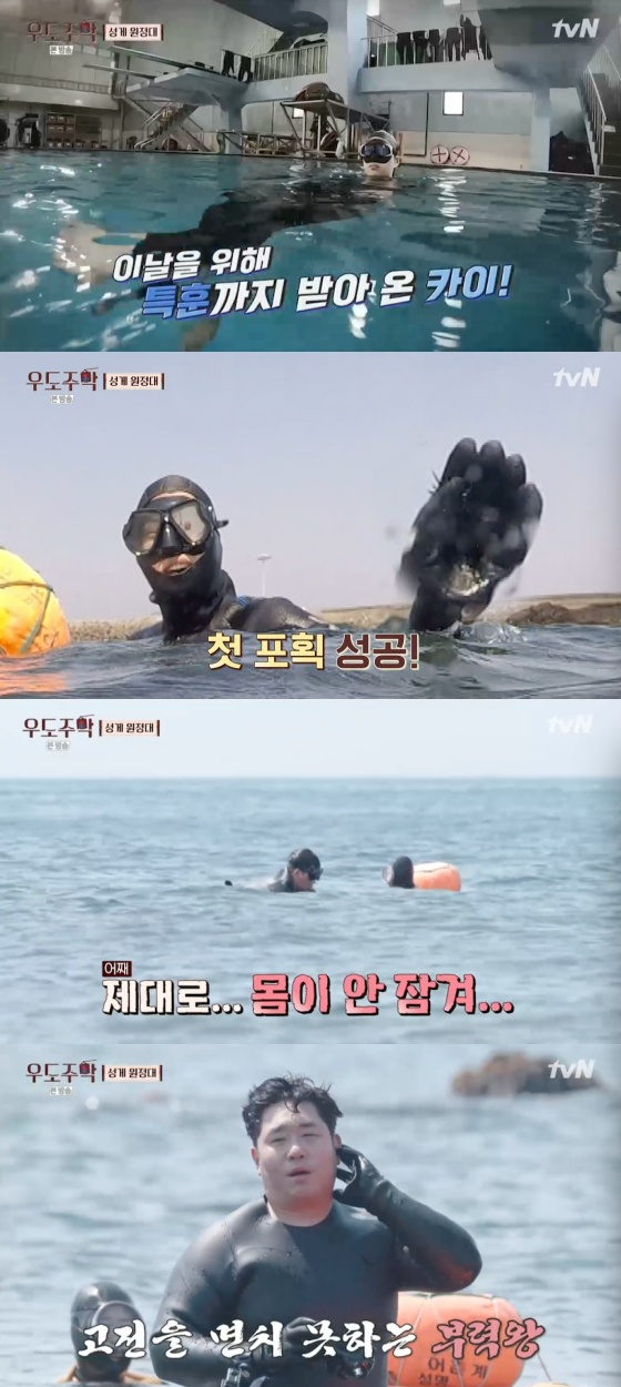 카이는 바다에서 뭔가를 발견하고 잡아내려 했지만 실패하고 올라왔다. 카이는 가능성을 발견한 후 해녀에게 팁을 물었고, 물 위에서 바다를 살피며 성게를 찾은 후 바다로 내려갔다. 카이는 곧바로 성게 포획을 성공했다. 첫 포획에 성공한 카이는 계속해서 성게를 잡아왔다.