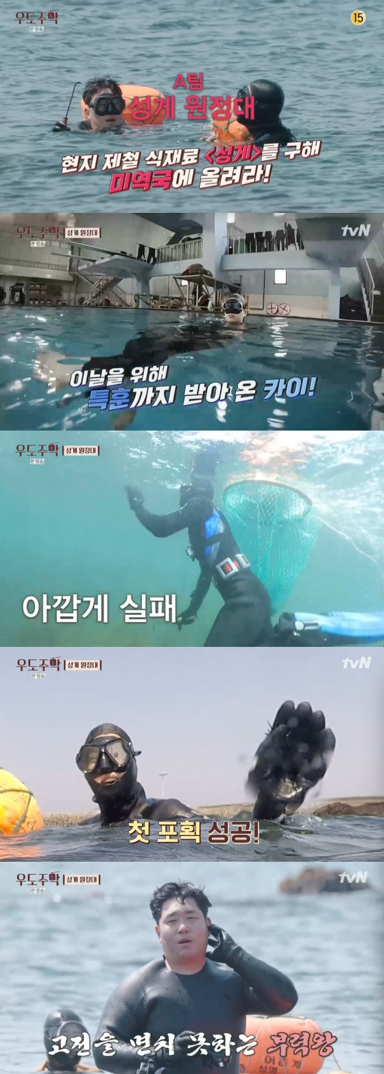 반면 문세윤은 살 때문에 바다에 들어가지도 못했다. 부력 때문에 자꾸 떠올랐던 것. 문세윤의 실책은 있었지만 카이와 문세윤은 성게 채취에 성공했다.