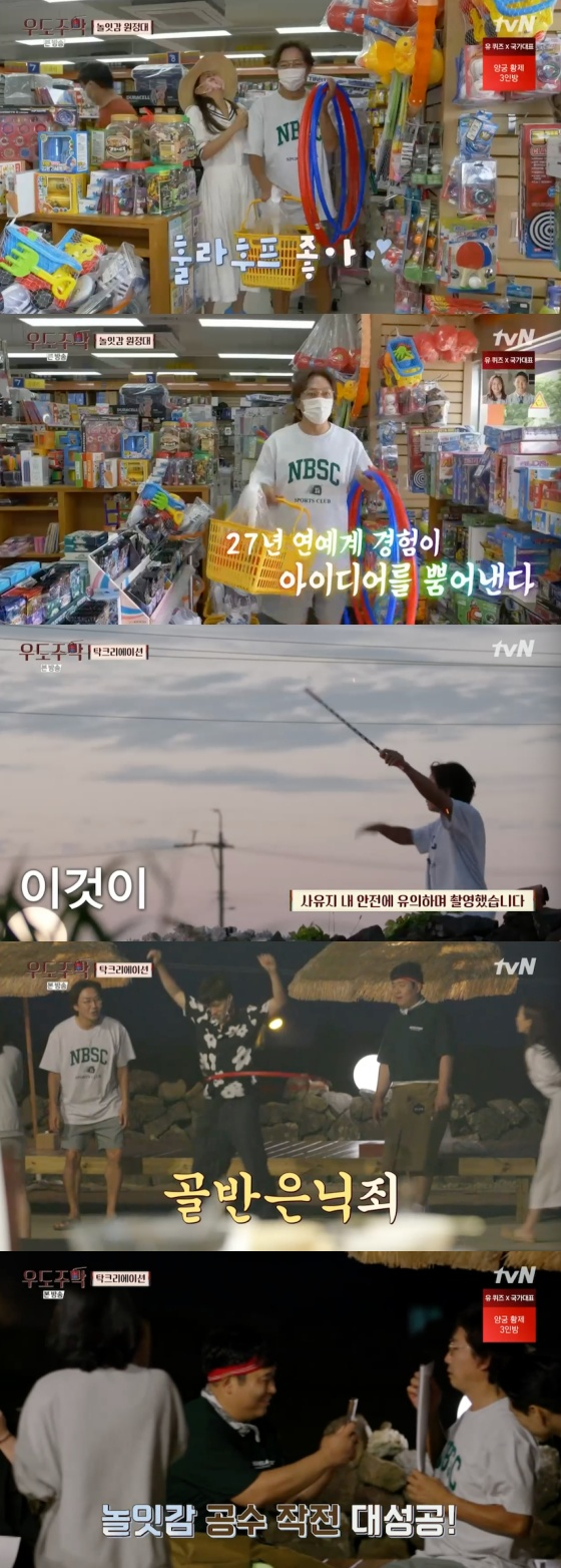 김희선과 탁재훈은 놀거리를 준비했다. 김희선과 탁재훈은 문구점에 가서 레크리에이션을 위한 것들을 샀다. 예능에 특화된 탁재훈은 신이 나 이것저것 골랐다. 훌라후프부터 스케치북까지 마음껏 쇼핑한 탁재훈은 만족한 얼굴로 우도주막에 돌아왔다.