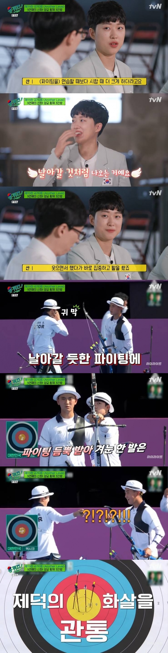 국가대표 양궁대표팀 안산, 강채영, 장민희가 '유퀴즈'에 떴다.