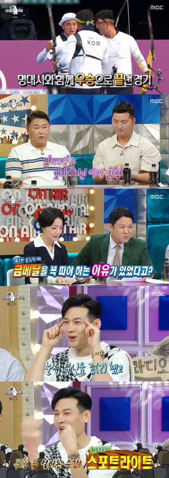18일 오후 방송된 MBC 예능프로그램 '라디오스타'에서 올림픽을 빛낸 유도선수 안창림, 펜싱 선수 구본길과 김정환, 양궁 선수 오진혁과 김우진이 출연했다.