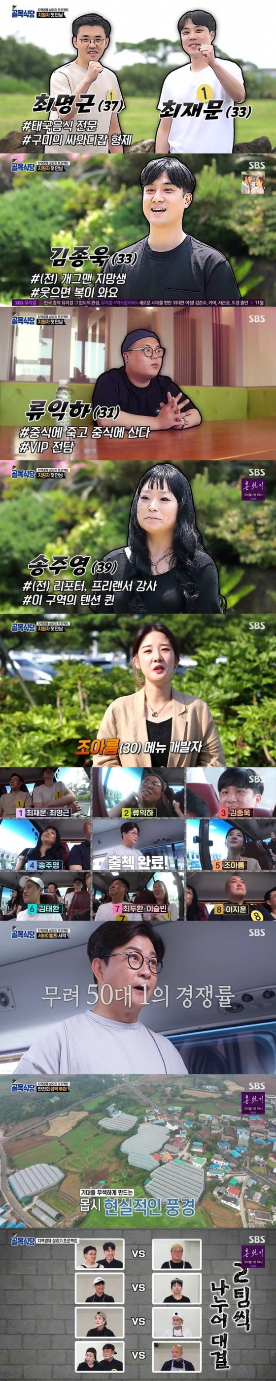 1번 태국음식 8년 차 최명근 최재문 형제, 2번 중식 7년 차 류익하, 3번 전 개그맨 지망생이자 티아라 매니저 출신 김종욱, 4번 전 리포터이자 프리랜서 강사 송주영, 5번 대기업 메뉴개발팀 조아름, 6번 비보이 출신이자 밀면 경력 7년의 슈퍼바이저 김태환, 7번 삼겹살집 7년 최두환 이슬빈 부부, 8번 제주 토박이 말 조련사 이지훈이 서바이벌에 참가했다. 이들은 50대 1의 경쟁률을 뚫고 서바이벌에 참가했다.