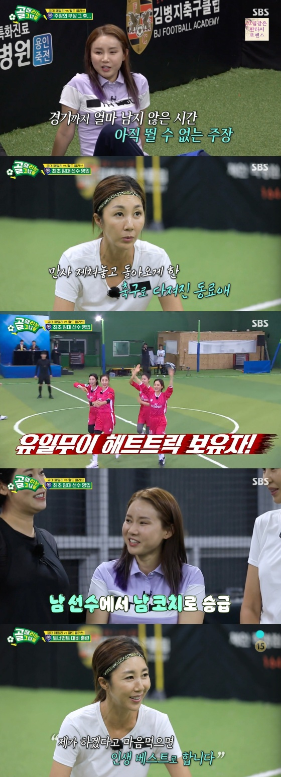 18일 오후 방송된 SBS 예능 프로그램 '골 때리는 그녀들'에서 전미라가 FC국대 패밀리로 돌아왔다.
