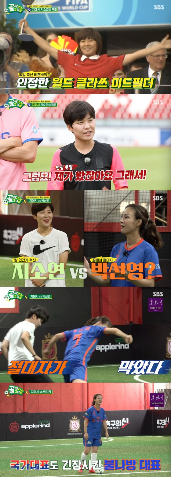 지소연은 FC불나방 에이스 박선영과 일대일(1:1) 경기를 벌이며 감탄했다. 지소연과 박선영은 공격과 수비를 번갈아가며 경기했다. 지소연은 박선영의 수비를 보고 감탄했고 "긴장돼서 발이 안 움직인다"며 박선영의 실력을 칭찬했다.