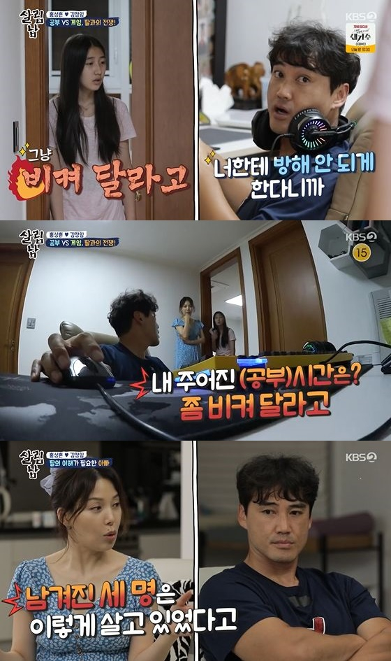 이날 홍성흔은 밤 늦게 게임을 하는 문제로 딸 홍화리와 말다툼을 벌였다. 이에 중간에 끼인 홍성흔의 아내는 "아이들이 아빠와 한집에서 사는게 17년 만이다"라며 두 사람의 중재에 나섰다.