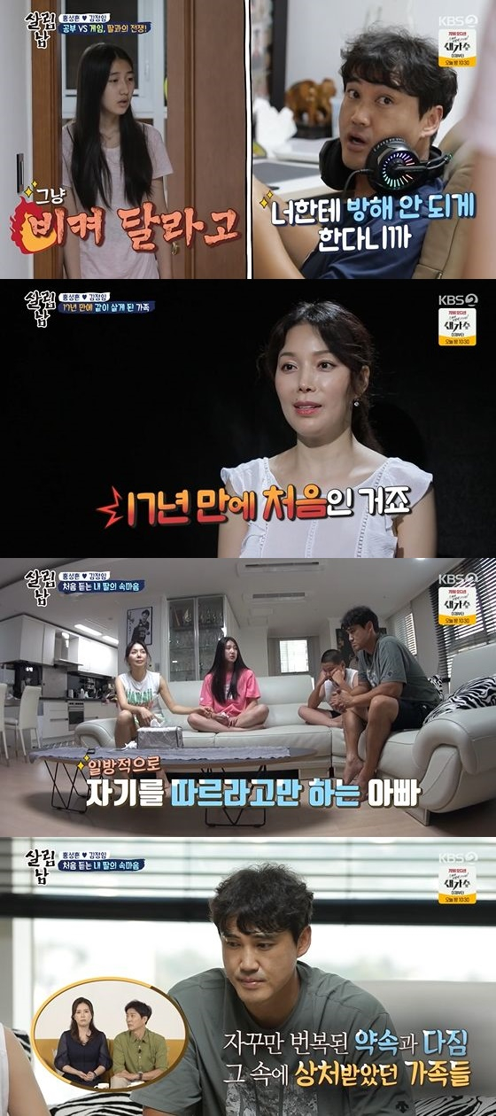 딸 홍화리는 "아빠가 게임하는 게 너무 싫고 이대로는 못 살겠다"며 배려없는 아빠의 모습에 화를 냈다. 반면 홍성흔도 "배려가 없다. 모든 학생이 공부하는데 혼자 유난떤다"며 불평했다.