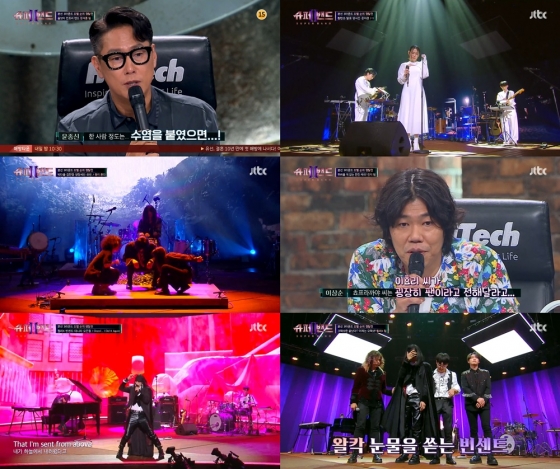 지난 23일 방송된 JTBC '슈퍼밴드2'(연출 김형중, 김선형) 8회에서 본선 3라운드 '조별 순위 쟁탈전'이 그려졌다. A조와 B조에서 각각 1위를 기록한 두 팀만이 전원 생존할 수 있는 가운데, 이날 A조 정석훈 팀, 황현조 팀, 박다울 팀, 린지 팀, 윌리K 팀, 황린 팀의 무대가 공개됐다.