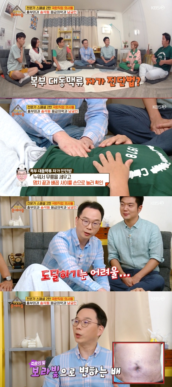 이어 송석원은 "대동맥은 (육안으로) 알 수 없다. 피가 배 안에 완전히 다 퍼지며 돌덩이처럼 단단해지고 피부 색깔이 보라색으로 변한다"고 설명했다.