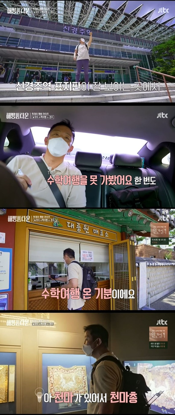 24일 오후 방송된 JTBC 예능프로그램 '내가 나로 돌아가는 곳 - 해방타운'에서 허재가 홀로 경주 수학여행을 떠났다.