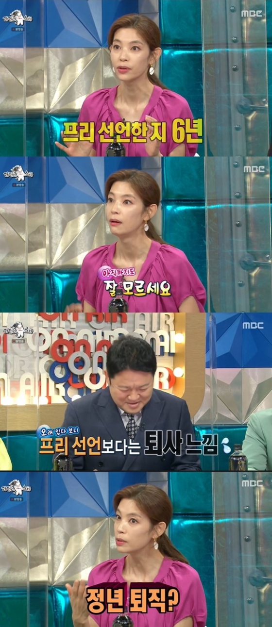 프리랜서 이후 처음 '라디오스타'에 출연한 황수경은 이날 "6년 동안 '라디오스타' 출연을 기다렸다"며 '웃픈' 사연을 공개했다. 황수경은 "사실 프리 선언한 지 6년이 됐다. 2015년에 나왔는데 잘 모른다. 사실 나이가 들어서 나오니까 프리 선언보다는 퇴사 느낌, 어떤 분들은 정년 퇴직이라 하기도 한다"고 말했다.