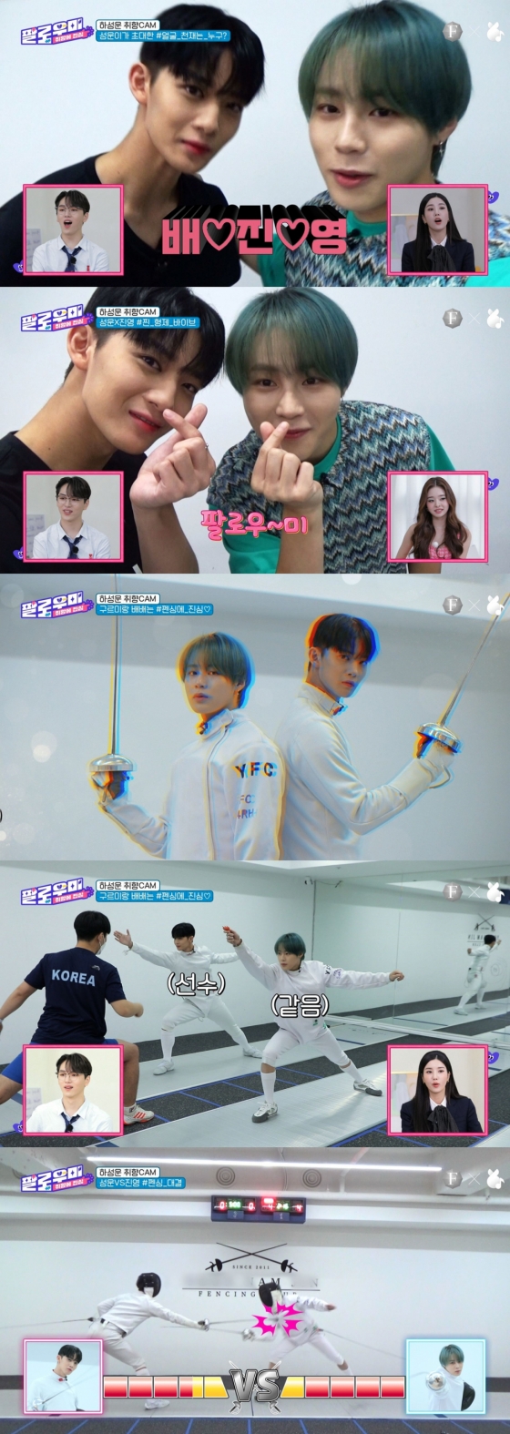 평소 쇼트트랙, 스키 등 각종 운동 종목에서 수준급 실력을 자랑하는 배진영은 최근 진행된 녹화에서 처음 도전하는 펜싱도 빠른 흡수력을 자랑해 모두를 놀라게 했다. '팔로우미' MC 하성운 역시 운동 마니아답게 남다른 몸놀림을 보여줬다. 두 사람은 한 편의 드라마 같은 진지한 펜싱 경기를 펼쳐 보는 즐거움을 더한다고.