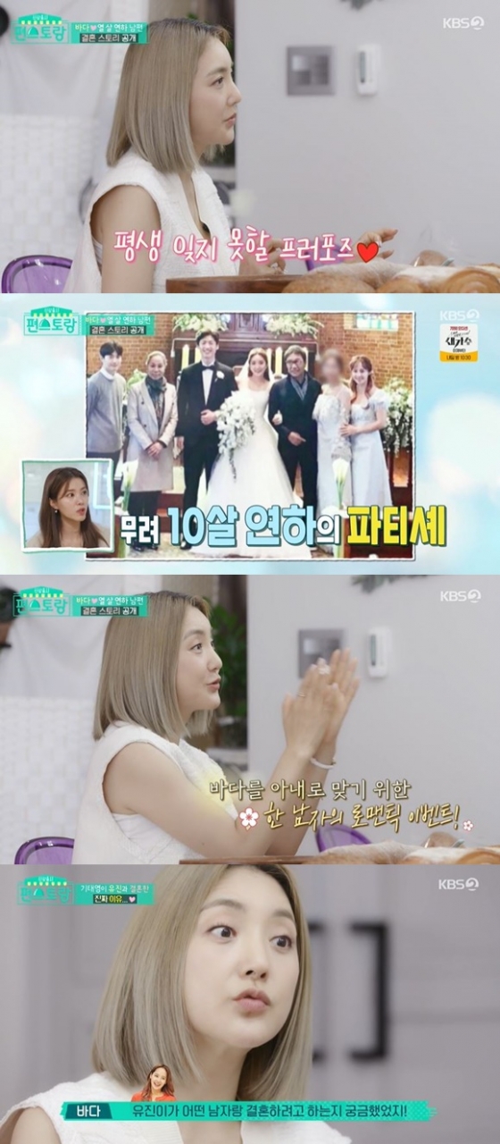 이어 바다는 "나는 유진이가 어떤 남자랑 결혼할지 진짜 궁금했다"며 기태영의 첫인상에 대해 "톱스타인 줄 알았다"며 놀렸다.
