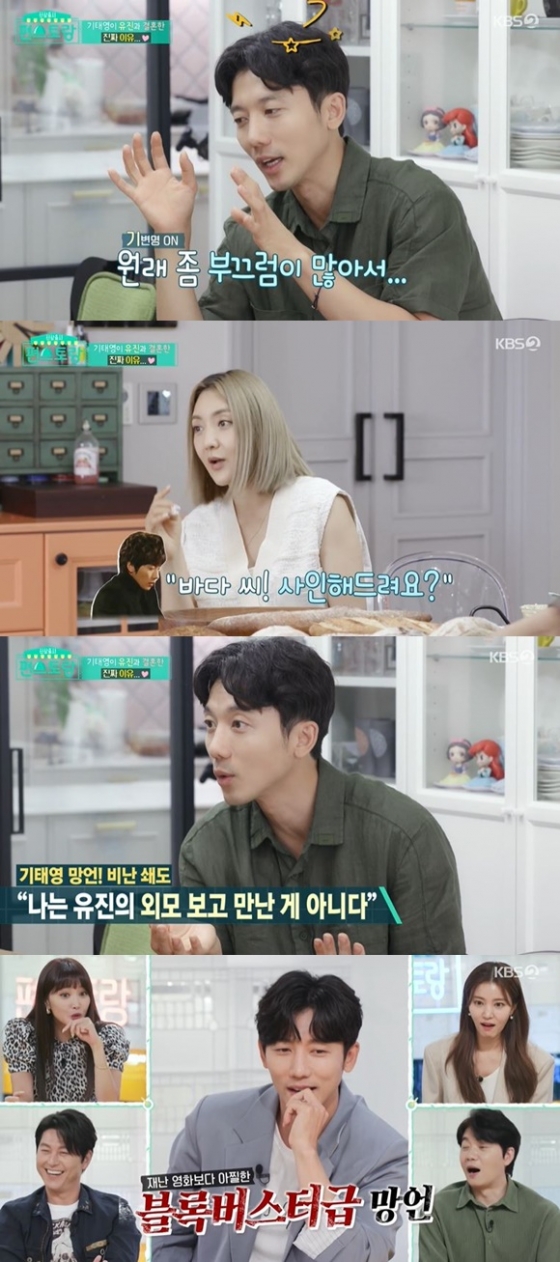 '신상출시 - 편스토랑'에서 배우 기태영이 출연해 아내 유진의 성품에 반해 결혼했다고 밝혔다.