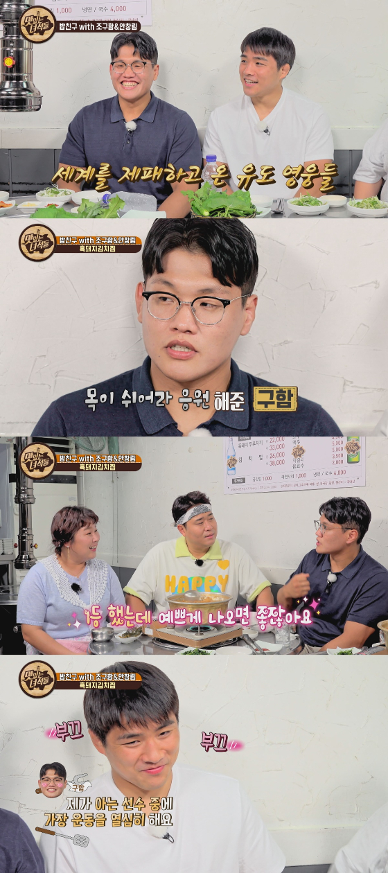 조구함, 안창림은 KH그룹 필룩스유도단에서 함께 실력을 쌓아온 선후배 사이인 만큼, 티격태격 케미스트리를 뽐내 시종일관 유쾌한 분위기를 형성했다.