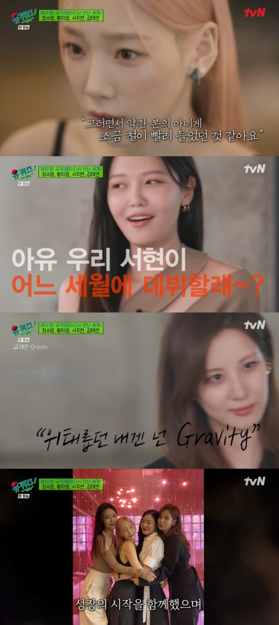 반면 수영은 "난 연습생 때 평화로웠다. 아무 생각이 없었던 거 같다. 내가 이미 7년 정도 연습했고 난 어느 구성에도 빠지지 않아서 당연히 데뷔한다고 생각했다. 태연이는 노래 잘한다고 생각했고 서현이를 무릎에 앉히고 '뭐가 되고 싶어'라고 물었는데 같은 그룹이라고 해서 충격이엇다. 난 3~4명 그룹인줄 알았는데 9명이라고 했다"라고 말해 웃음을 자아냈다.