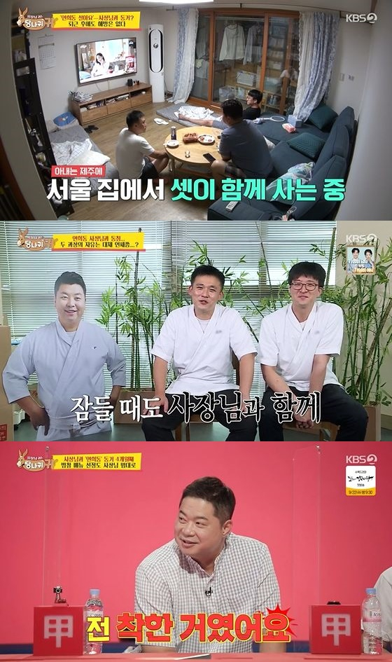 직원들은 사장님과의 동거 생활에 대해 "행복은 한데, 너무 많이 같이 있는 것 같다"고 말해 눈길을 끌었다.