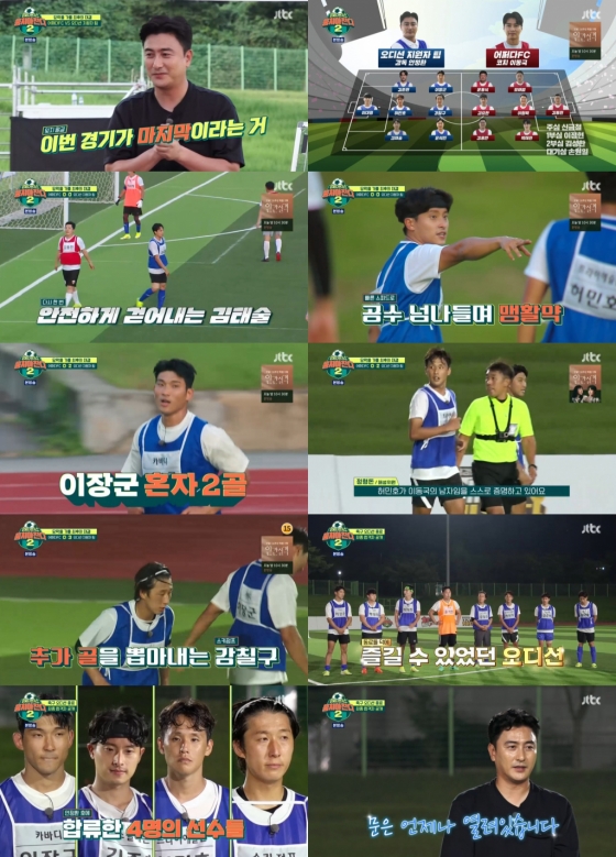 이처럼 '뭉쳐야 찬다 시즌2'가 예능 최초로 시도된 축구 오디션은 지원자 개인을 집중 조명한 1차 오디션을 통해 비인기 스포츠 종목과 축구를 사랑하는 전설들을 알린 의미 있는 발자국을 새겼고, 2차와 3차에선 본격적인 실전 테스트로 쫄깃한 재미까지 안겼다. 4주간의 대장정을 통해 안정환 감독, 이동국 코치가 그린 '어쩌다FC'의 새로운 미래에 과연 어떤 승부의 이야기가 펼쳐질지 앞으로를 더욱 기대케 만들고 있다.