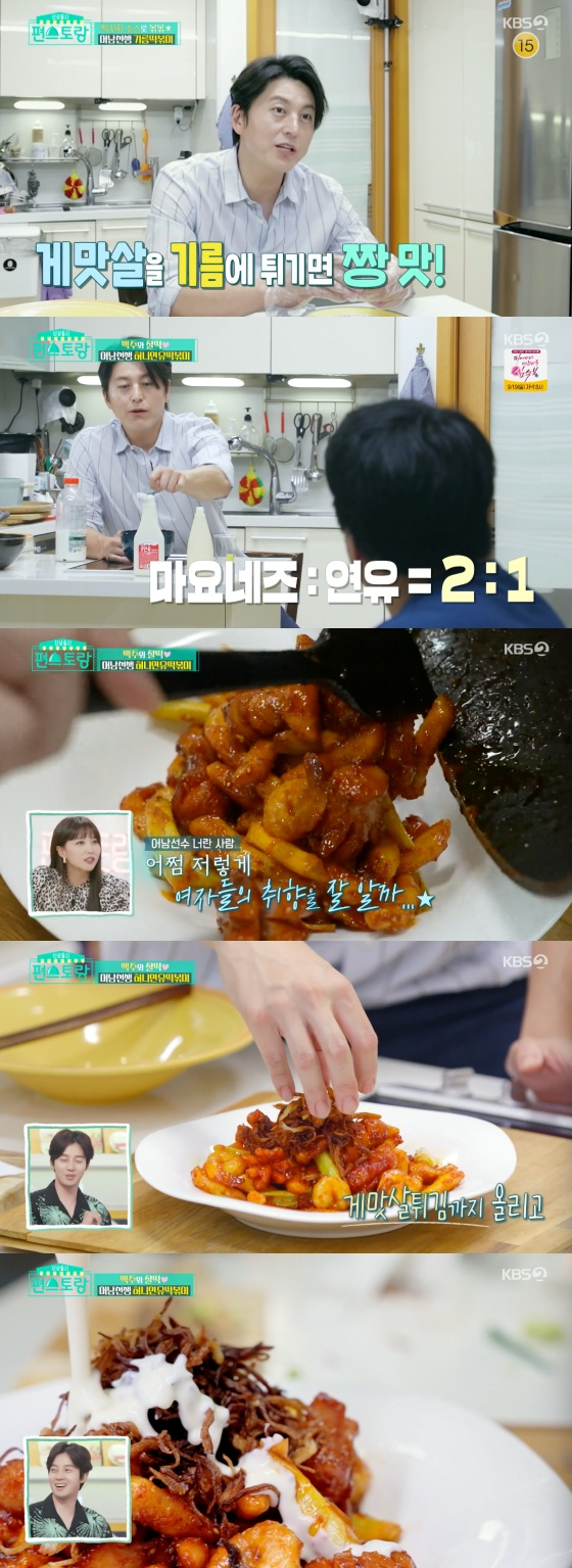 류수영은 "게맛살을 기름에 튀기면 맛있다"며 게맛살 튀김을 가니쉬로 준비해 새로움을 더했다.