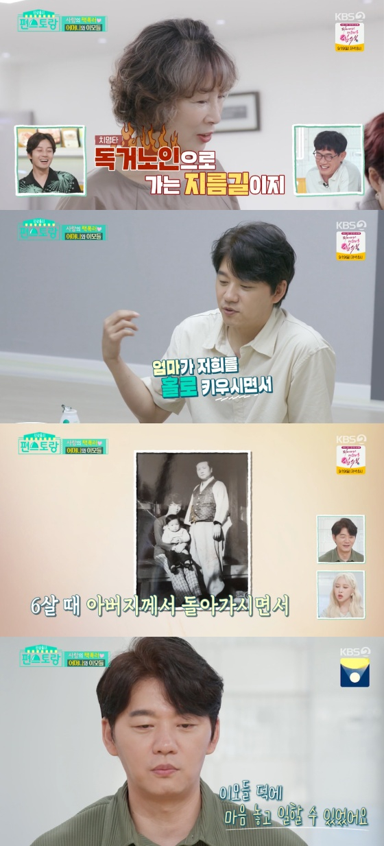 이어 "일하면서 집에 없을 때가 많았는데 이모님들이 어머니를 자주 만나고 여행도 같이 다녀서 그게 감사했다"며 마음을 표현했다. 이모들 덕에 마음 놓고 일할 수 있었던 김승수였다.
