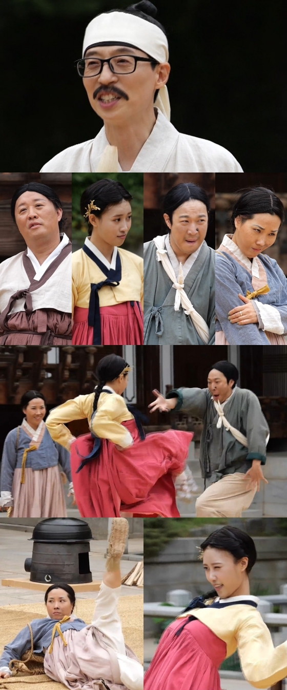 공개된 사진 곳에는 유대감 댁의 노비로 변신한 5인방이 포착돼 폭소를 자아낸다. 조선시대 탐관오리로 곡식이 가득한 곳간을 소유한 유대감은 한가위를 앞두고 노비들을 위해 곳간을 오픈했다. 서로의 얼굴을 똑바로 볼 수 없을 정도로 강렬한 노비들의 비주얼이 유대감 댁에서의 치열한 삶을 예상케 만든다.