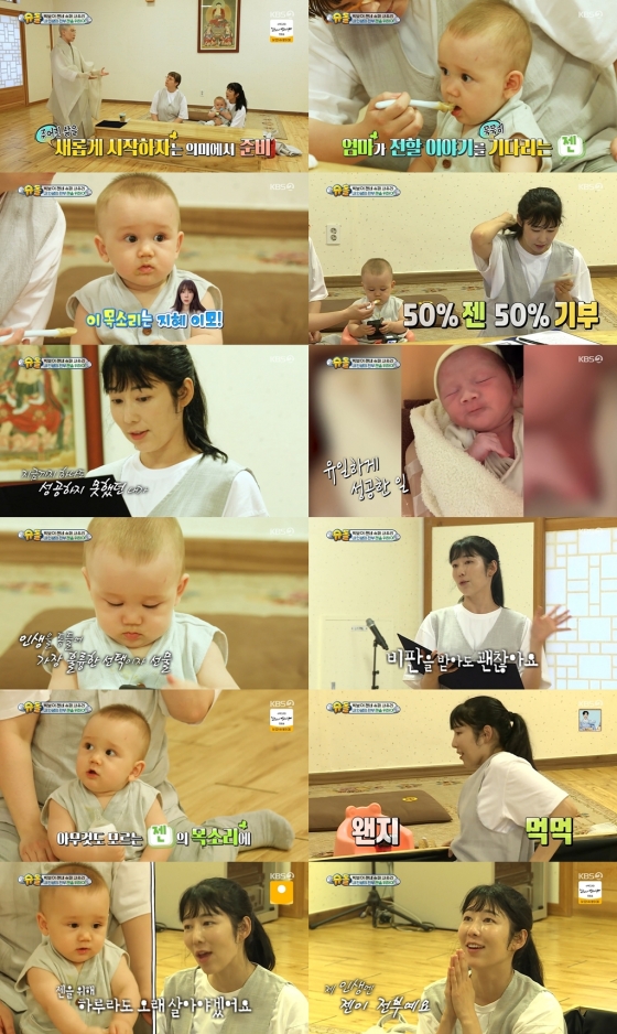 이날 사유리와 젠은 따루 가족과 함께 절을 찾았다. 이곳에서 이들은 발우 공양부터 임종체험, 108배 등을 경험했다. 특히 사유리의 임종체험이 강렬한 인상을 남겼다. 주어진 삶을 새롭게 시작하자는 의미로 하는 임종체험. 사유리는 먼저 유서를 쓰며 남은 사람들에게 남기는 마지막 인사를 전했다.