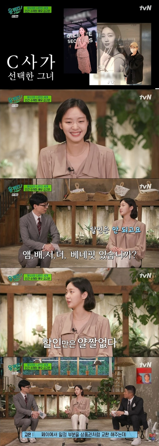 배우 김고은이 '유 퀴즈 온 더 블럭'에서 샤넬 글로벌 앰버서더 베네핏에 대해 밝혔다.