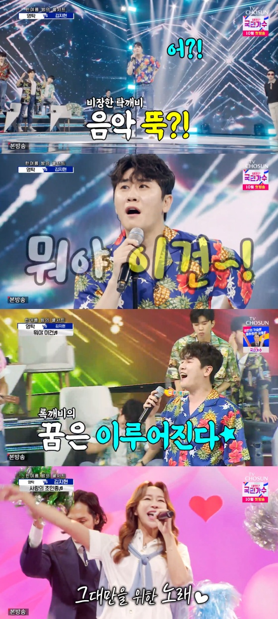 김지현은 "아니 내가 영탁을 이기다니"라며 감격했다.