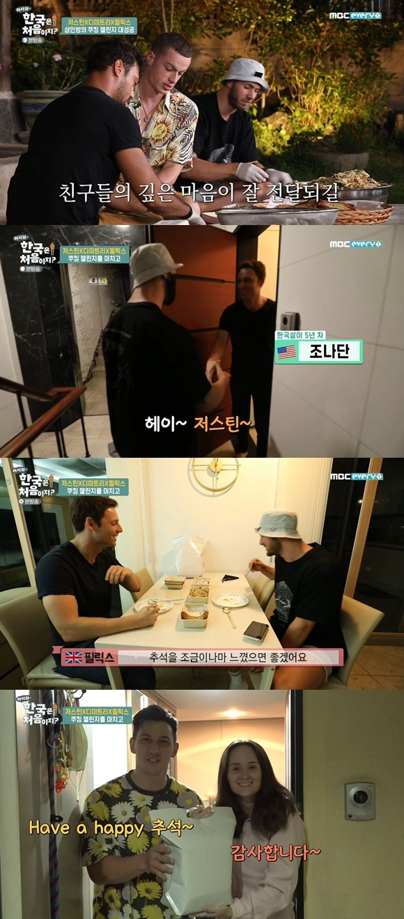 '어서와~ 한국은 처음이지?'에서 남아프리카 공화국 출신 저스틴과 친구들이 타향살이 외국인들을 위해 100인분 추석 음식을 배달해 따뜻함을 전했다.