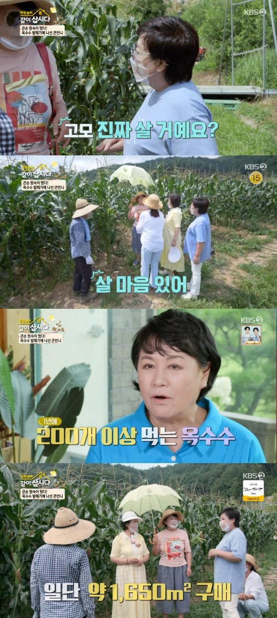 박원숙은 "1년에 200개 이상을 먹는다"며 옥수수에 대한 애정을 표했다. 그러나 계속되는 만류에 박원숙은 결국 1000평에서 반 줄인 500평 밭에 있는 옥수수를 구매하기로 결정했다.