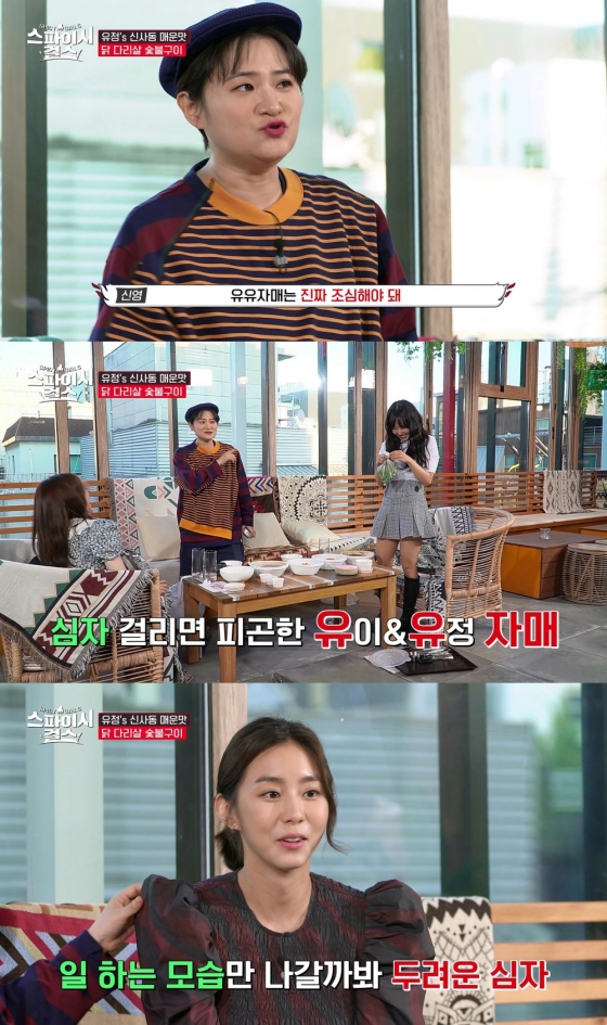 한편 이날 위키미키 유정도 김신영의 잔소리를 피할 수 없었다. 배달된 음식을 세팅하는 과정에서 마늘을 담는 초소형 접시가 나오자 "앞접시인가?" 라고 말했고 이를 들은 김신영은 황당해 하며 "유유자매를 조심해야 해. 내가 더 피곤해"라며 유이와 유정 주의보를 내렸다.
