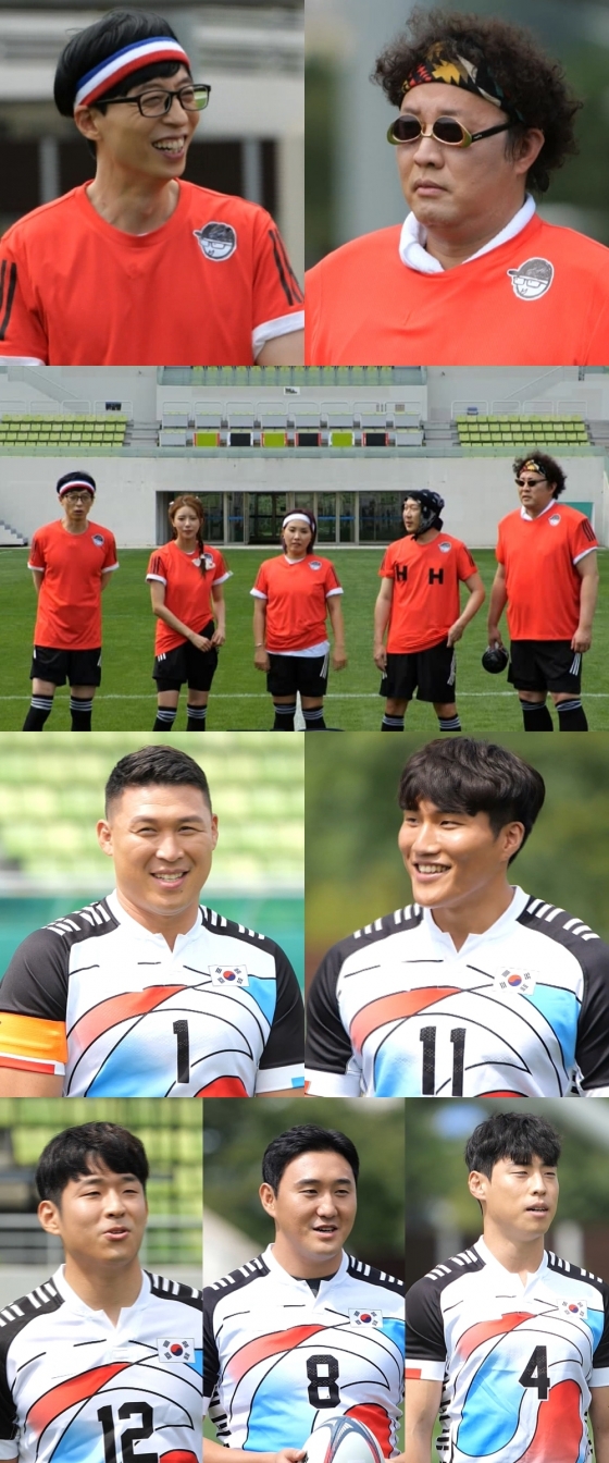 단체 유니폼을 맞춰 입고 한 팀이 된 유재석, 정준하, 하하, 신봉선, 미주가 2020 도쿄올림픽 럭비 국가대표 5인방과 오징어 게임 대결을 앞둔 가운데, 과연 주장은 누가될지 궁금증을 끌어올린다.