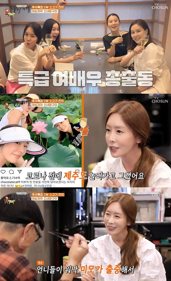 김정은은 "네 명이 모이면 음식은 뭘 먹냐"는 질문에 "고소영 언니가 맛집을 잘 찾아다니는 편이다. '이런 거 못 먹어' 내숭과들은 절대 아니다. 먹는 거 너무 좋아한다"고 답했다.