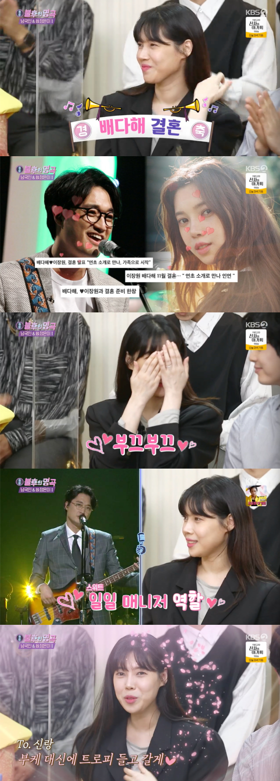 '불후' 뮤지컬 배우 배다해가 예비 신랑 이장원과의 달달함을 드러냈다.