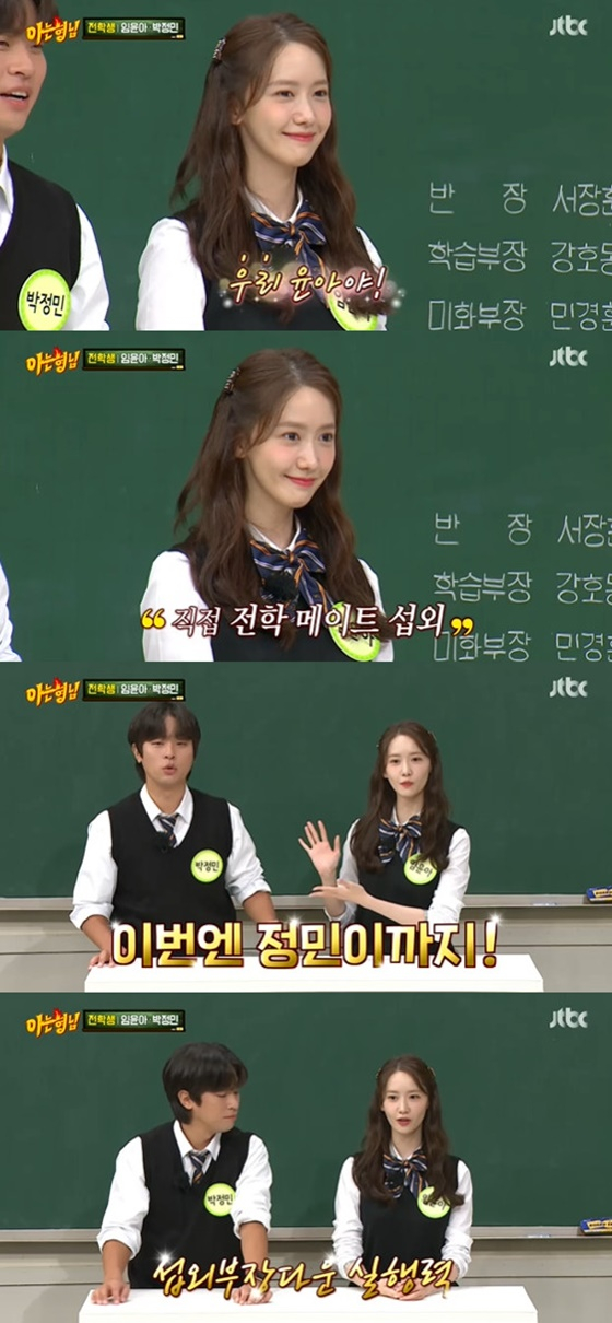 25일 오후 방송된 JTBC 예능프로그램 '아는 형님'에서는 영화 '기적'의 주연배우 박정민과 임윤아가 전학생으로 출연했다.