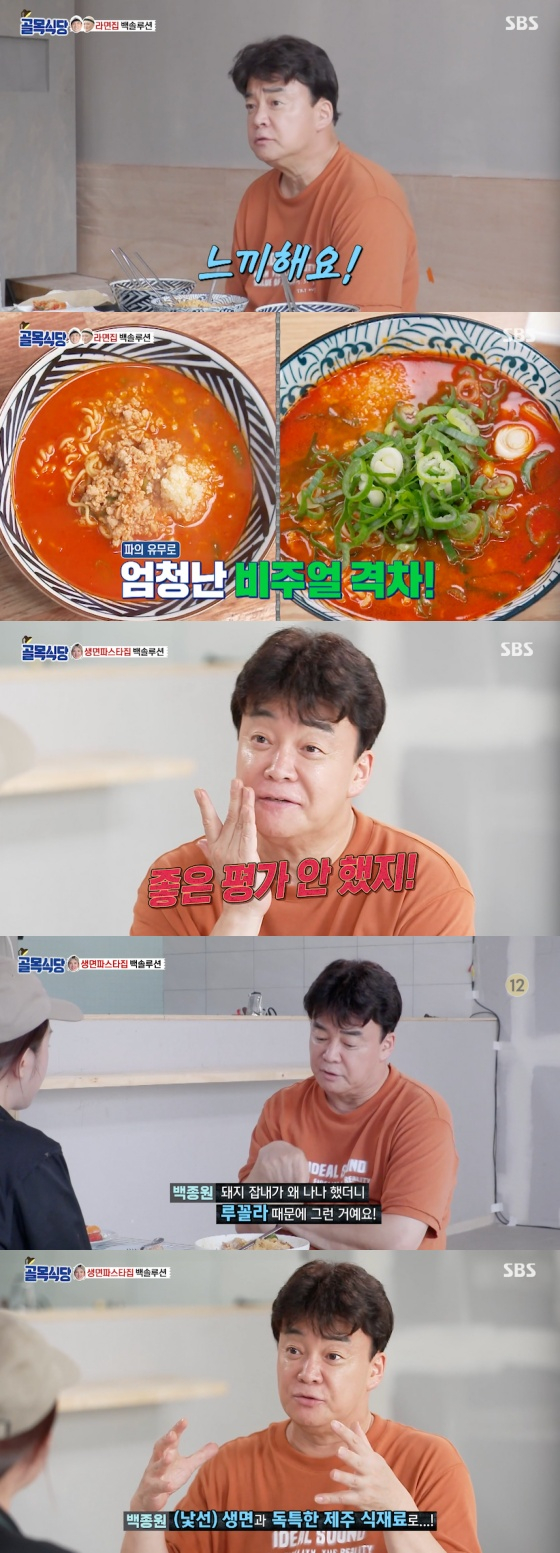 백종원은 "두 가지를 다 욕심내고 있다. 생면과 낯선 소스를 다 욕심내는데 테스트 해보니까 낯설어하는 분도 있다"며 문제점을 짚었다.