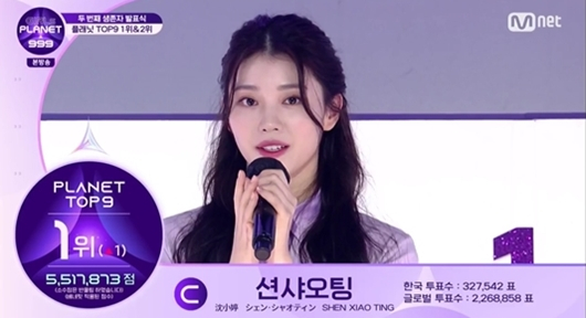 한편, 지난 24일 방송된 '걸스플래닛999' 8회에서 데뷔조를 상징하는 플래닛 TOP9 순위가 발표횄다. 션샤오팅이 1위를 차지했다. 이어 카와구치 유리나, 사카모토 마시로, 에자키 히카루, 최유진, 수루이치, 황씽치아오, 차이빙, 김채현 순이다. 남은 방송에서 참가자들의 순위 변동이 있을지, 최종 데뷔조에 합류할 TOP9은 누가 될지 귀추가 주목되고 있다.