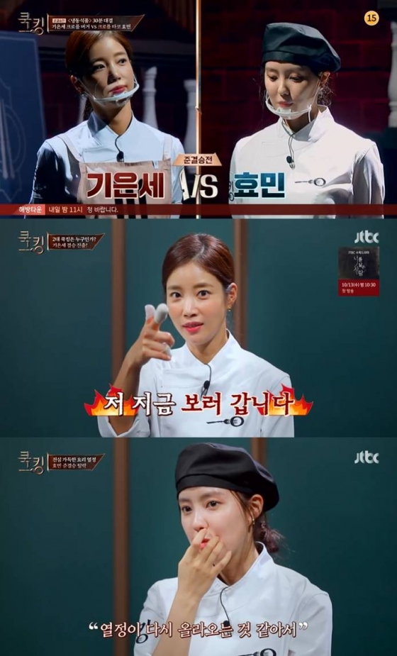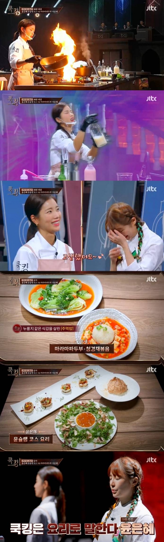 7일 방송된 JTBC 예능프로그램 '쿡킹-요리왕의 탄생'(이하 '쿡킹')에서는 기은세와 효민의 준결승 대결, 대결의 승자와 윤은혜의 2대 쿡킹 대결이 펼쳐졌다.