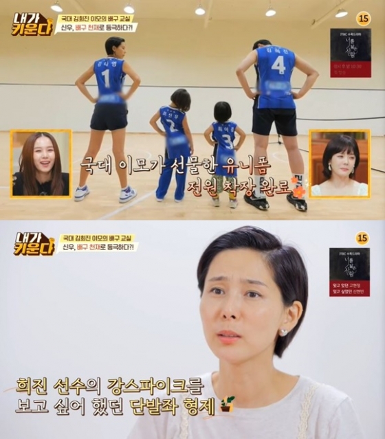 '배구국가대표 이모' 김희진 선수의 특별한 배구 교실도 눈길을 끌었다. 김나영과 두 딸은 김희진이 선물한 유니폼으로 갈아 입고 배구 교실에 참여했다.