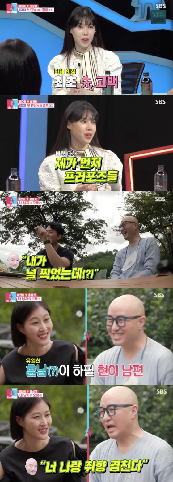 이현이-홍성기 부부는 홍석천을 만났다. 홍성기는 홍석천을 처음 만난 날을 떠올리며 "(홍석천이) '내가 찍었는데 (이현이 남자친구냐)'라고 했다"고 기억했다. 이현이 역시 "'유일한 훈남이 이현이 남친이냐. 너 나랑 취향이 겹친다'고 했다"고 떠올렸다.