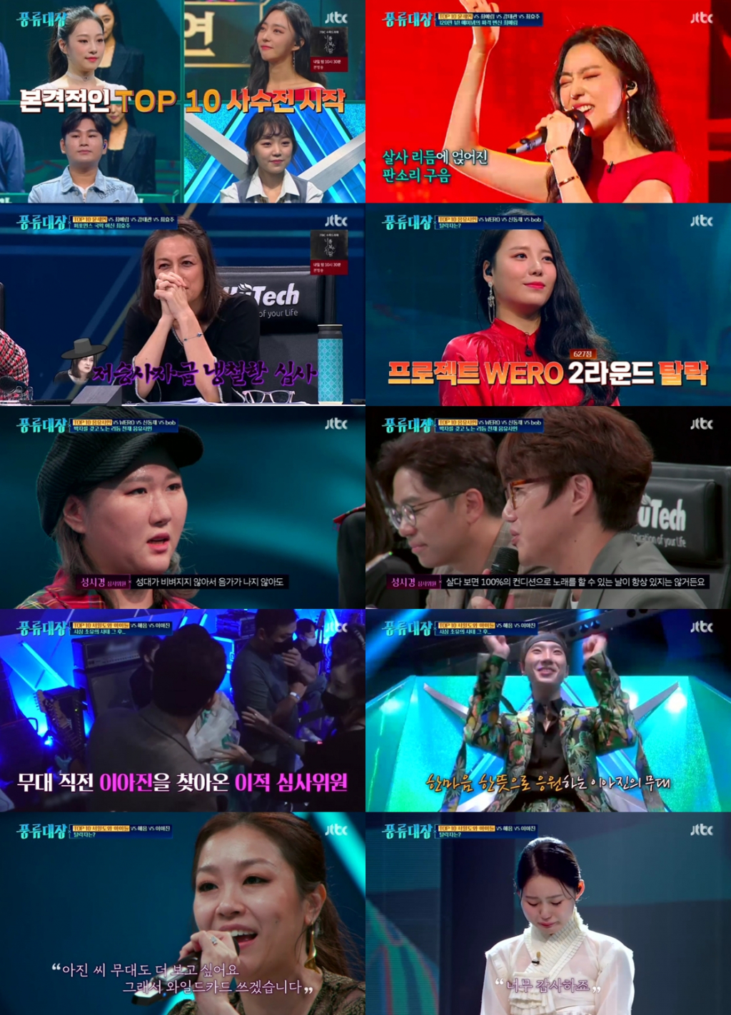 지난 19일 방송된 JTBC 예능프로그램 '풍류대장-힙한 소리꾼들의 전쟁' 4회는 베일에 가려져 있던 1라운드 톱10의 주인공과 2라운드를 뜨겁게 달굴 경연 방식이 공개됐다. 2라운드는 도전자에 맞서 자리를 사수해야 하는 톱10 방어전 방식으로 진행됐다. 톱10에게는 2라운드에서 최저점을 받고 자리를 빼앗기더라도 탈락하지 않고 3라운드 자동 진출권 혜택이 주어졌다.