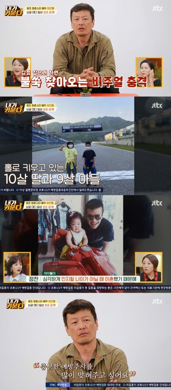 '용감한 솔로 육아 - 내가 키운다'에서 배우 정찬의 솔로 육아 6년 차 충격적 비주얼이 공개됐다.
