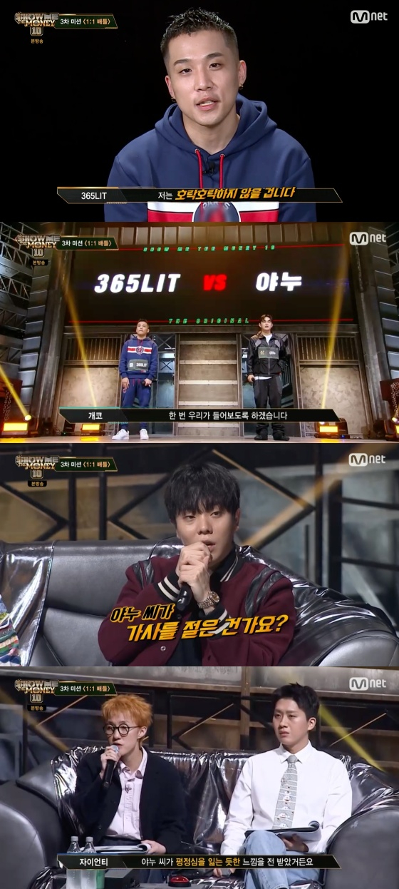 가수 365LIT가 '쇼 미 더 머니10'에서 야누를 상대로 일대일 배틀에서 승리했다.