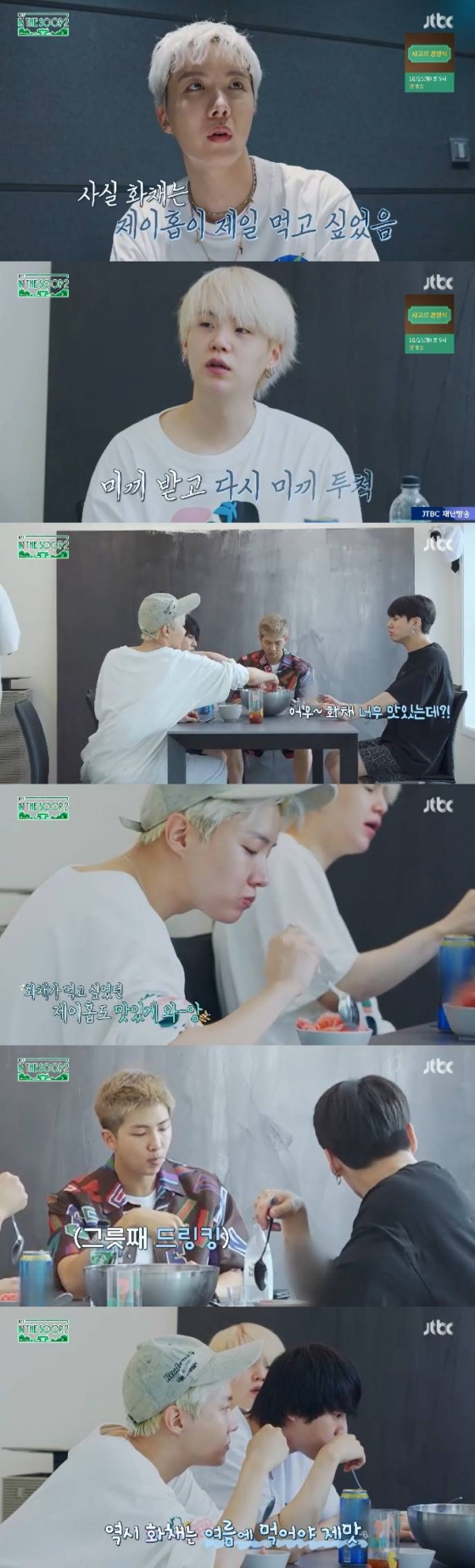 방탄소년단 멤버들이 식사를 마친 후, 슈가와 정국이 여름 속 화채 만들기에 돌입했다.