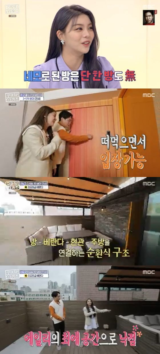 돋보이는 점은 고급 호텔을 방불케하는 야외공간이었다. 소파와 테이블, 자동 어닝까지 갖춰져 있어 감탄을 자아냈다. 에일리는 "제가 만약 입주를 했다면 콘센트가 있어서 바베큐도 구워먹으면 좋을 것 같다"고 소감을 밝혔다.